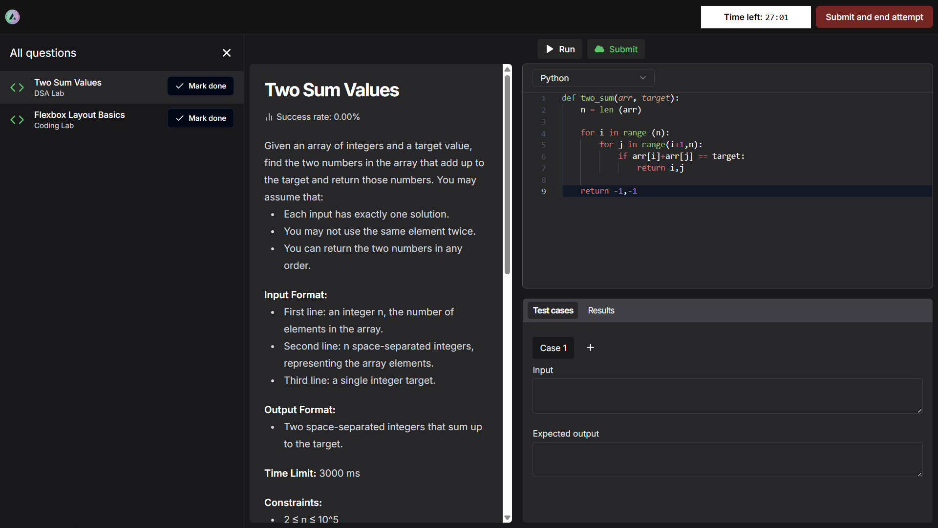 - This is a timed test. Ensure you are not interrupted during the contest, as the timer cannot be paused once started.