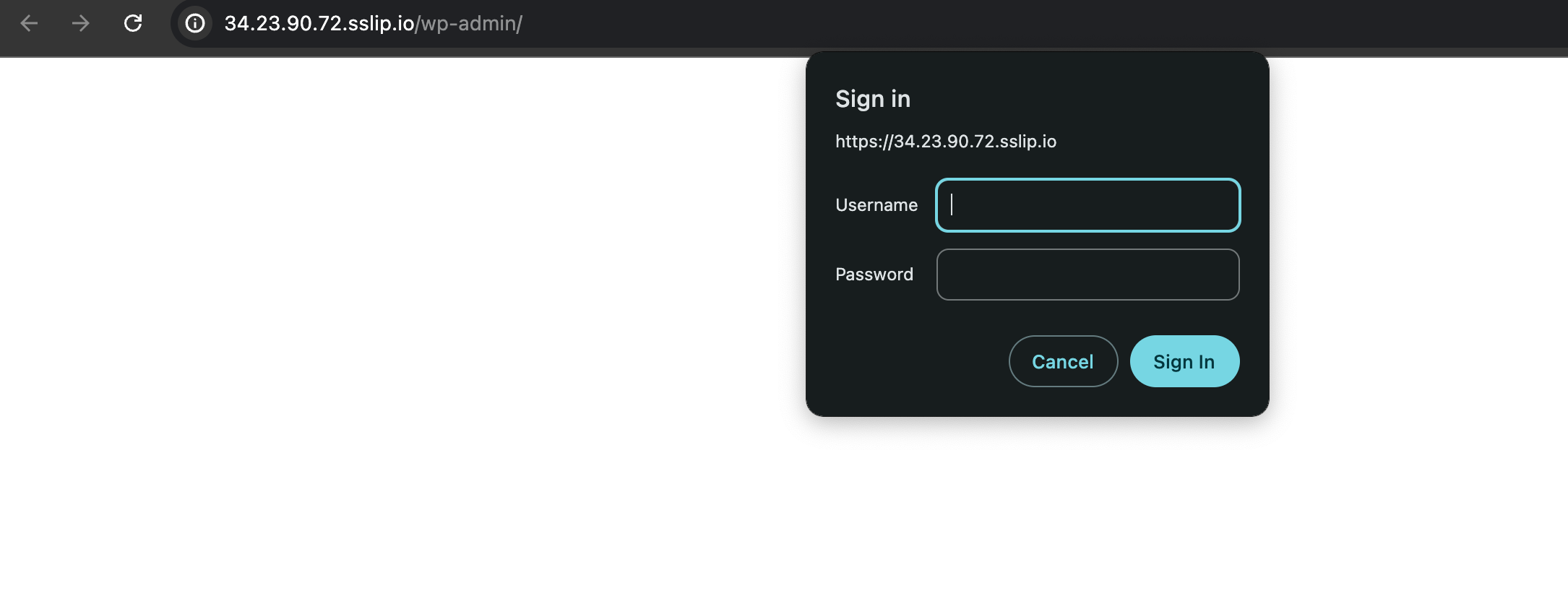 Step 4: Open WordPress, and use the credentials on your previous screen to access WordPress.