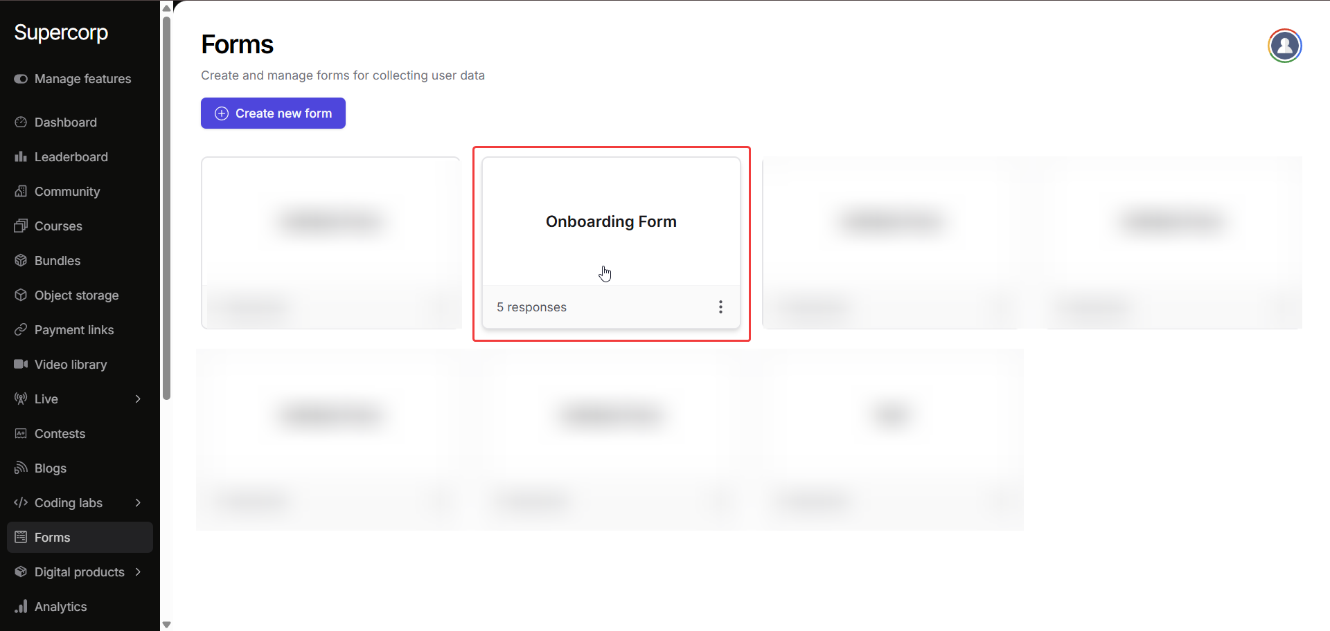 Go to the Forms section in your dashboard and click on the form you want to access submissions for.