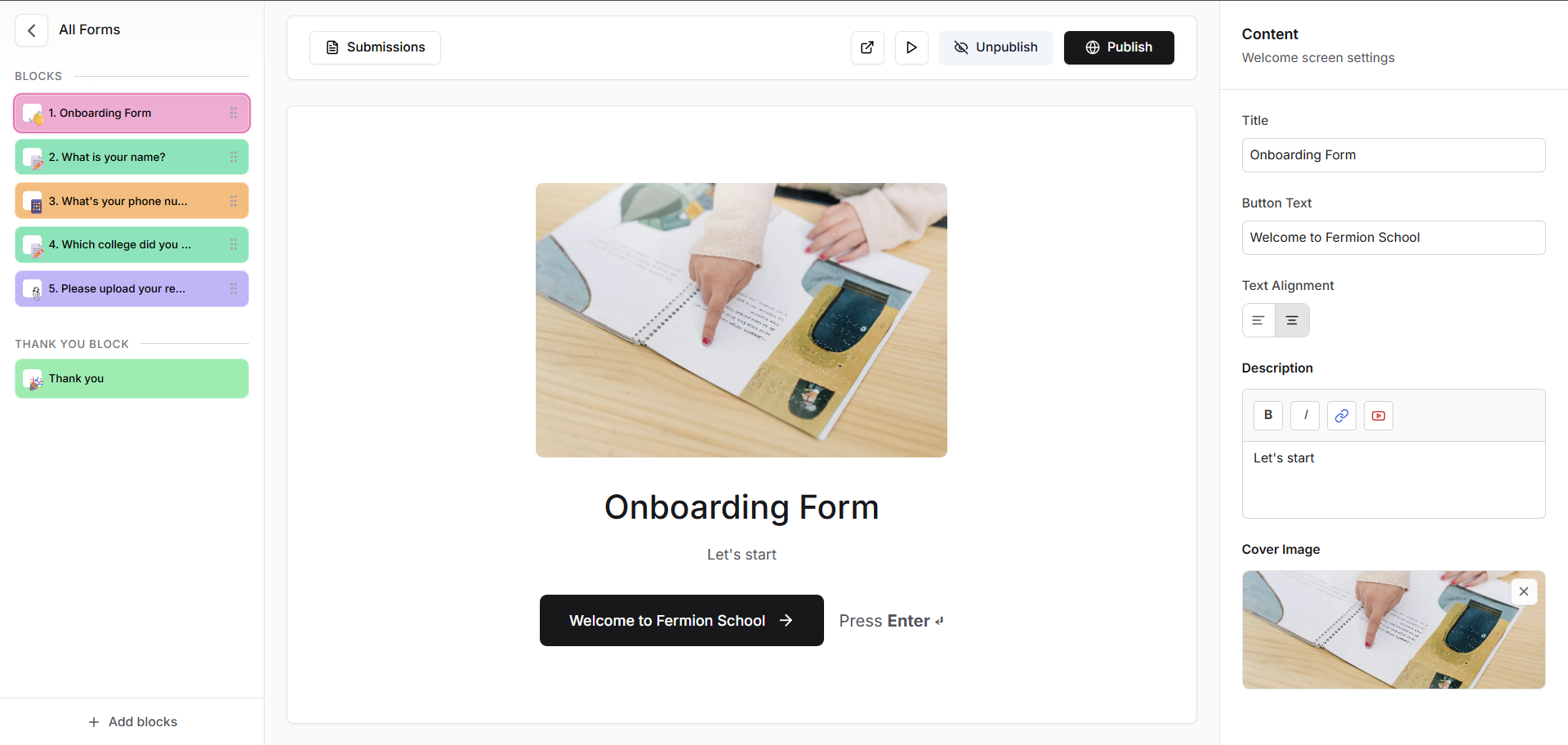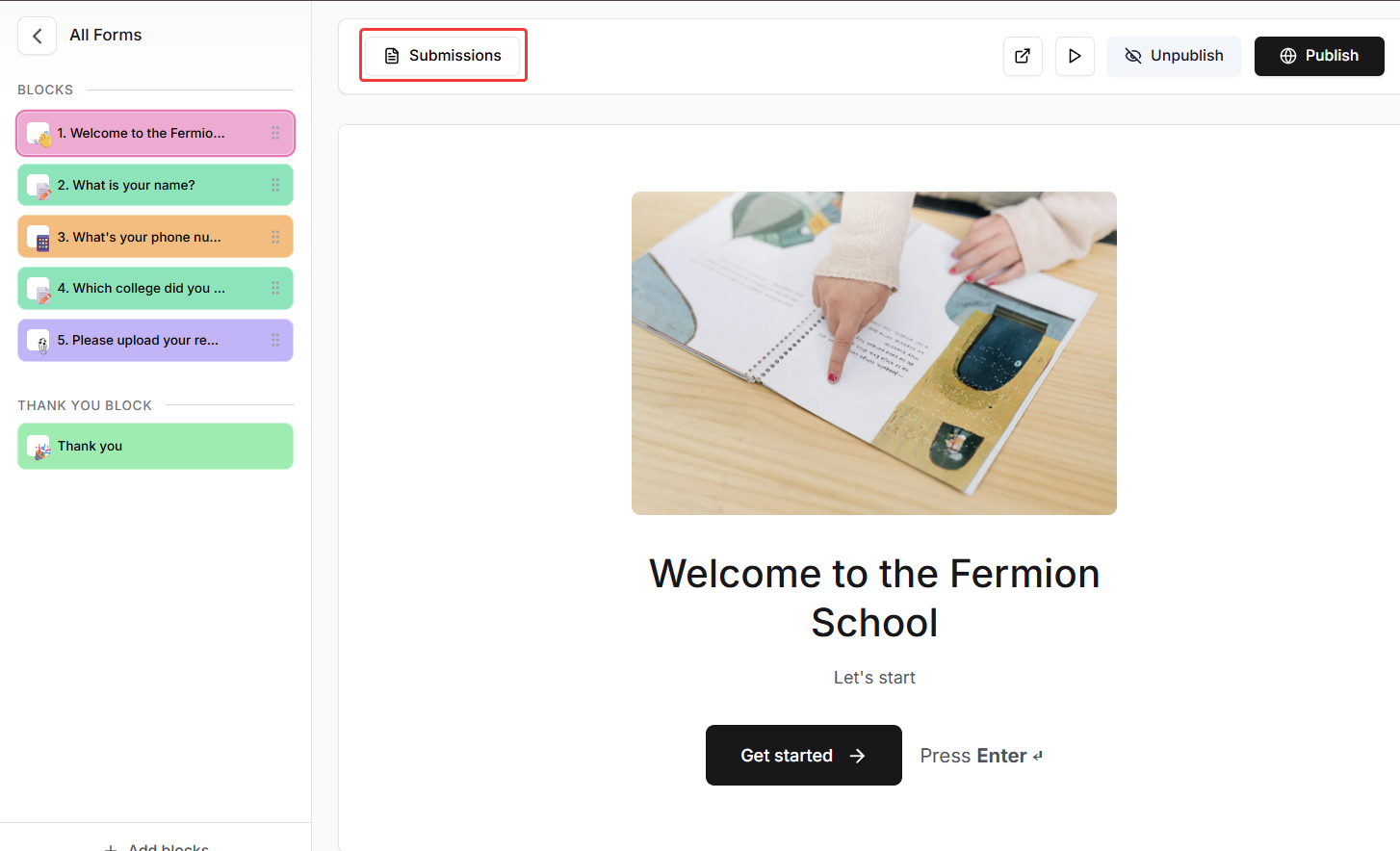 All onboarding form submissions are automatically stored in the Submissions tab inside your form. You can export them as CSV or view them directly from your dashboard.