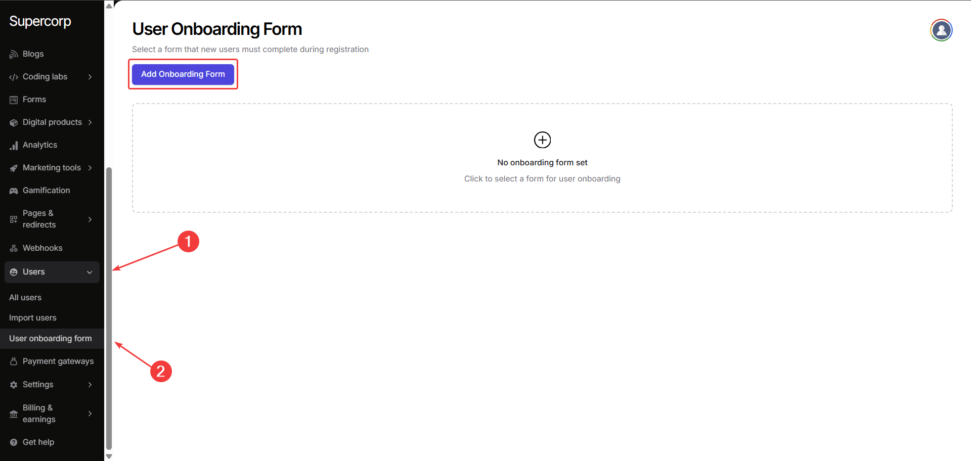 After creating your form, go to Users → User Onboarding Form from your instructor dashboard sidebar.
