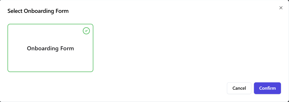 Click on Add Onboarding Form, then select the form you created in the 2nd step.