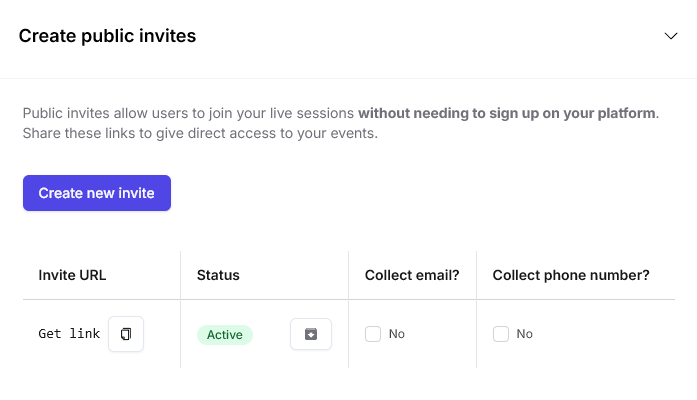 And that’s it! You can now share the invite link with your audience and manage access and data collection preferences directly from this table.Session management