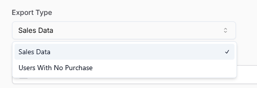 - Sales data – Export all sales for a date range. Selecting this shows more options: