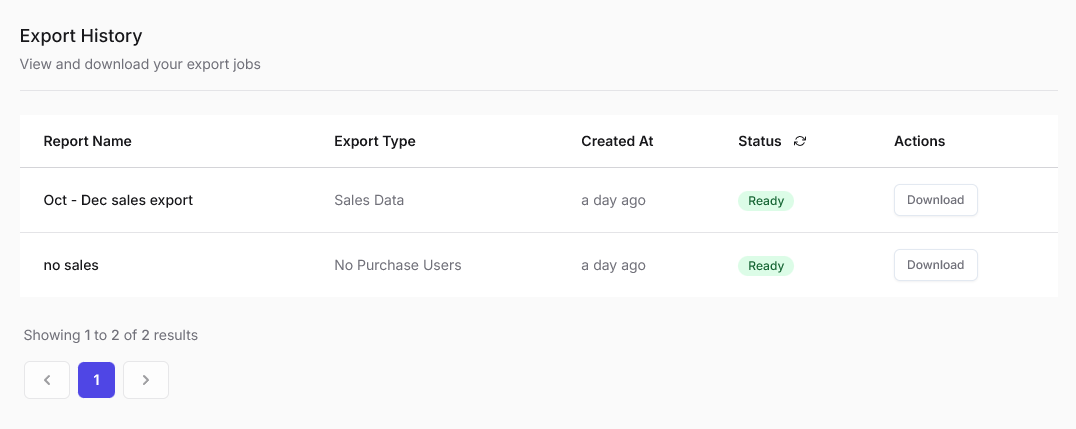 Use exports for reconciling payments, tax compliance, deeper analysis, or to retarget users who haven’t made a purchase.