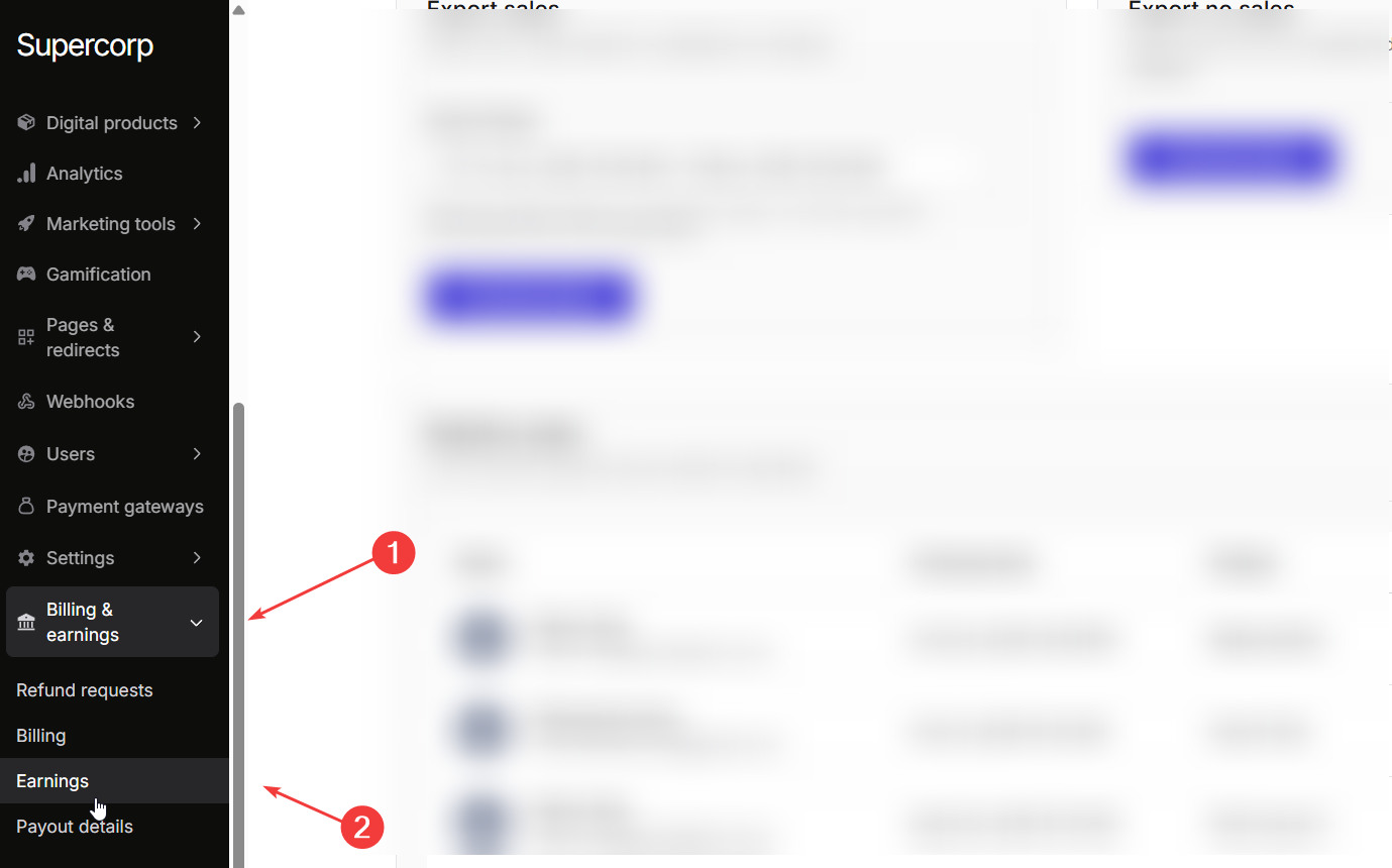 In the sidebar menu, scroll down to the Billing and Earnings section.