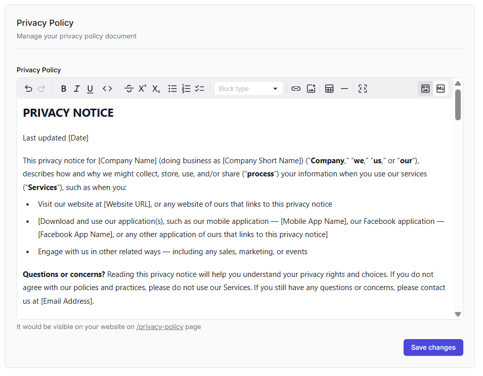 - Add links to external policies (e.g., payment gateways or third-party tools)