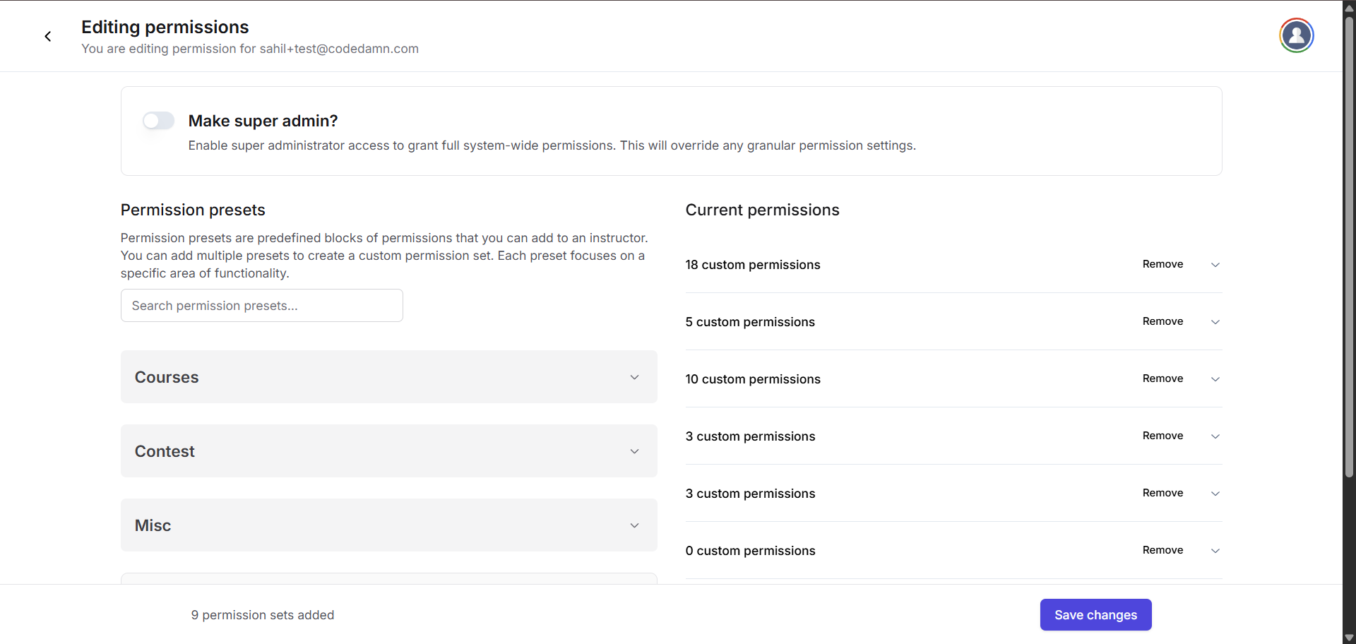 Permission presets on Fermion are designed to give you fine control over what each instructor can do within your school.