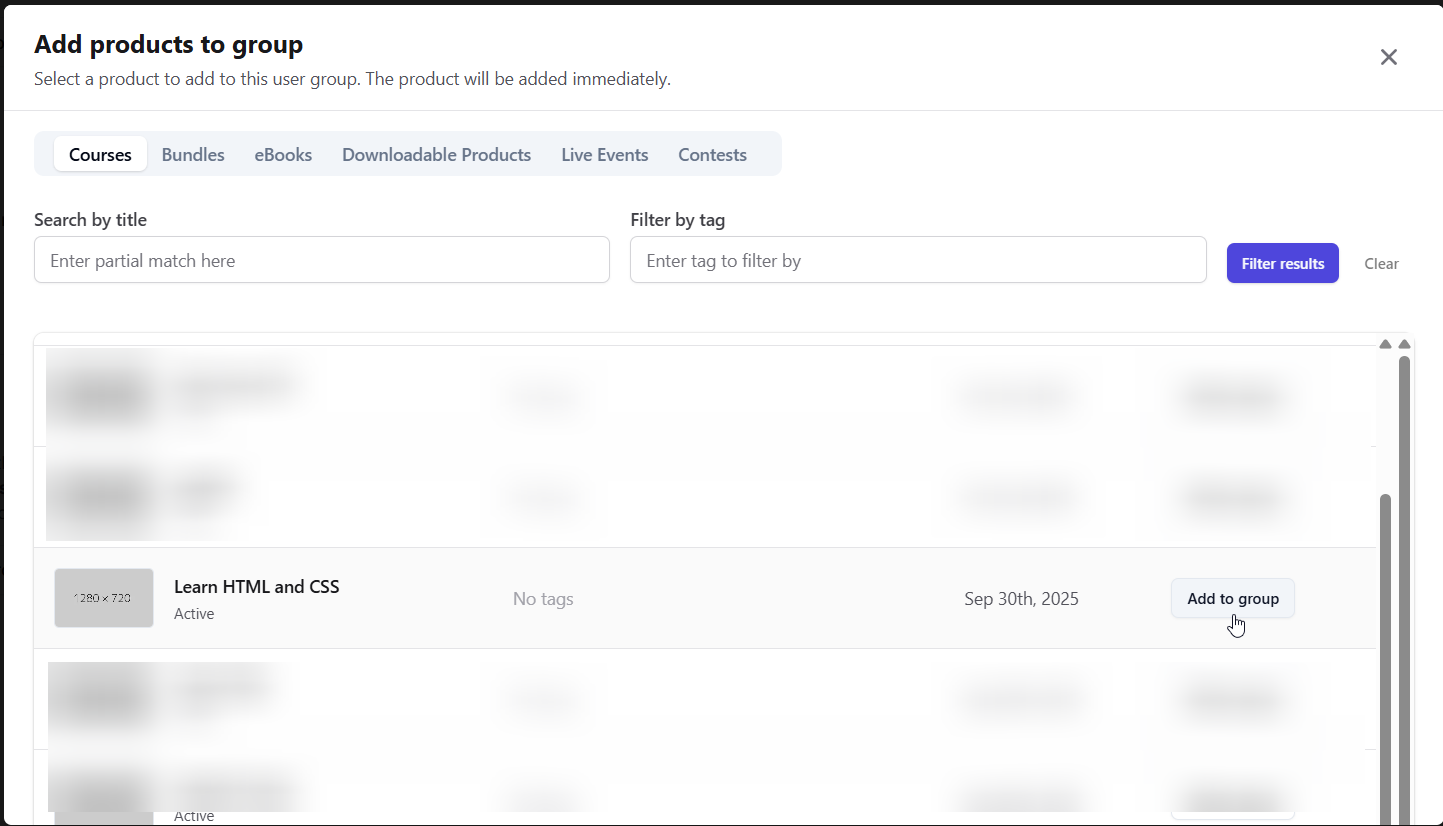 You can also add users to a group by enrolling them in a product. All users enrolled in that product will automatically be added to the user group.