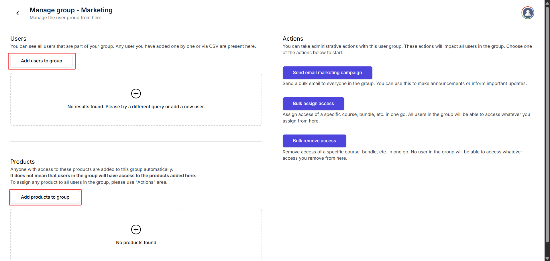 Now, you can start adding users to these groups either directly or with the help of product enrollments. Any user who has access to the product added in the user group will be added to the user group.