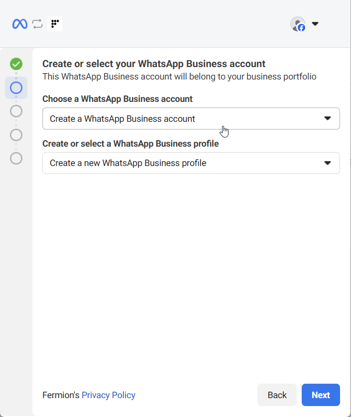 Decide which WhatsApp Business account will belong to your business portfolio. You can either select an existing account or create a new WhatsApp Business profile.