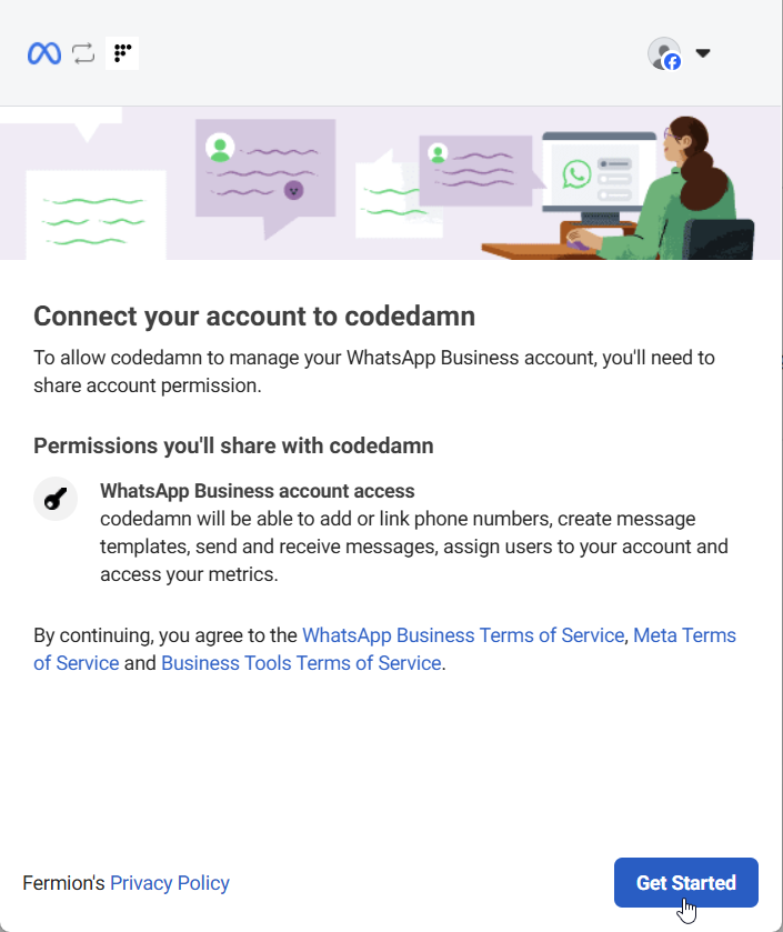 To allow Fermion to manage your WhatsApp Business account, you need to share account permissions.