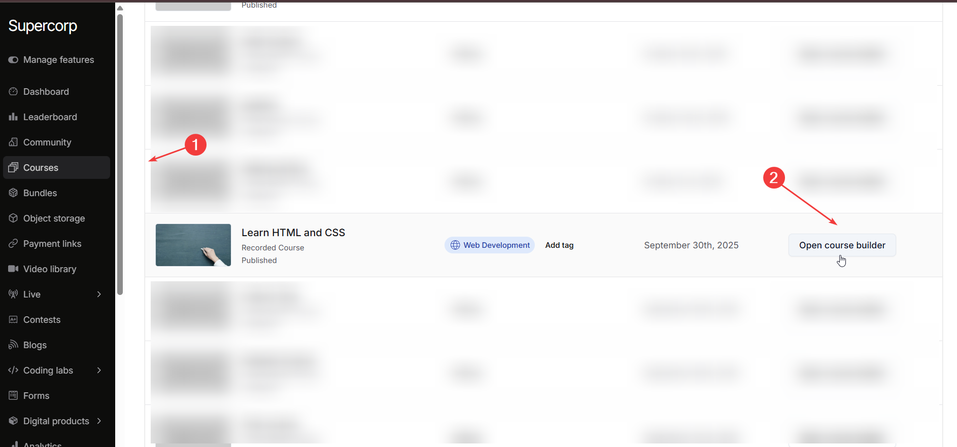Head over to the courses section and open the course builder which is associateed with the video you want to attach the in-video quiz to.
