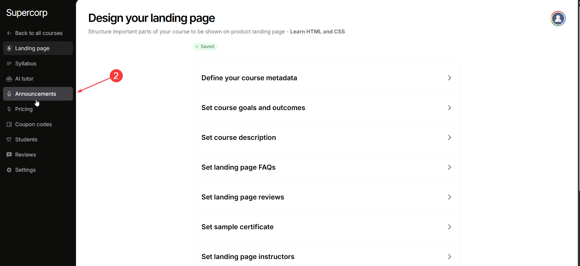Head over to the Courses section and open the course builder for the course you want to send an announcement for.
