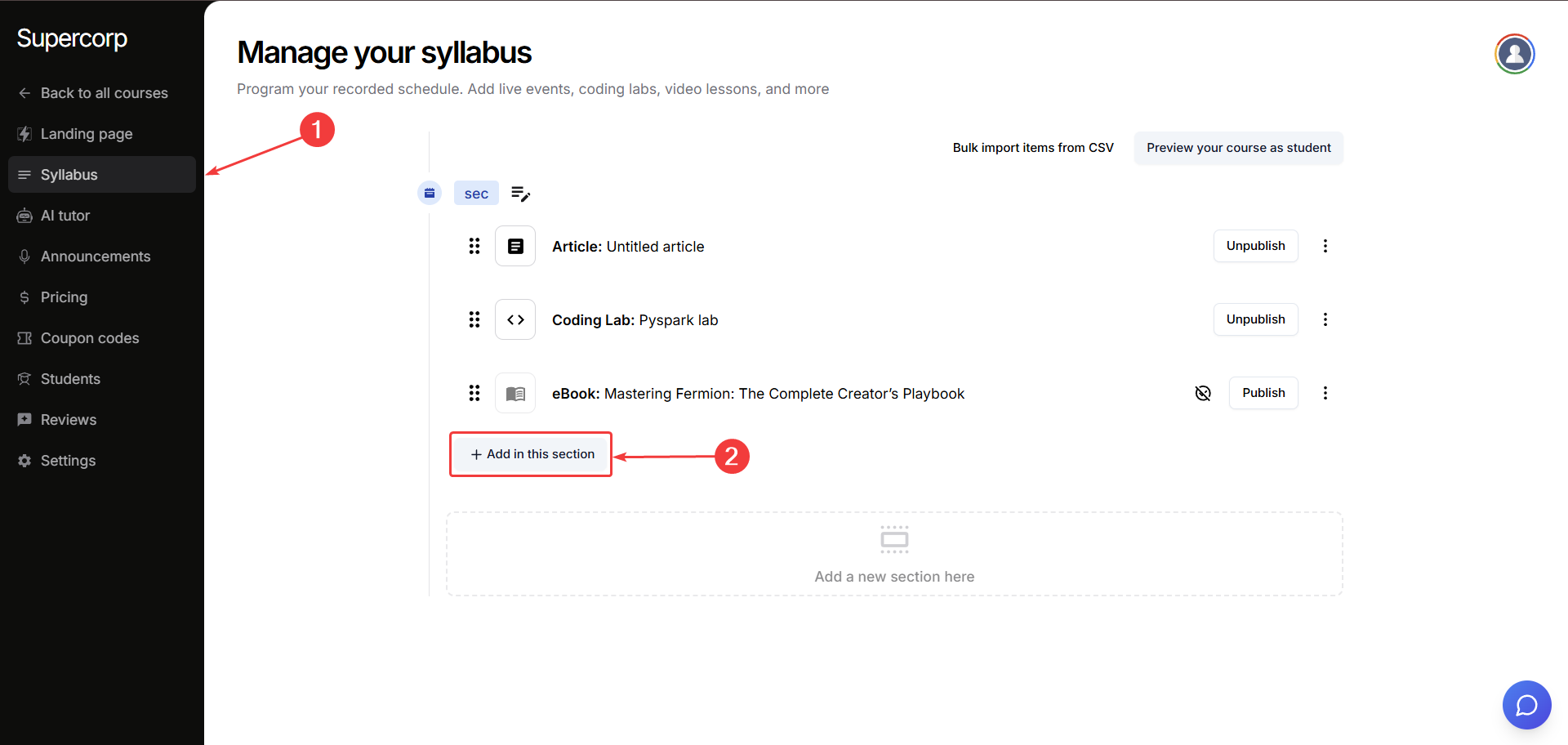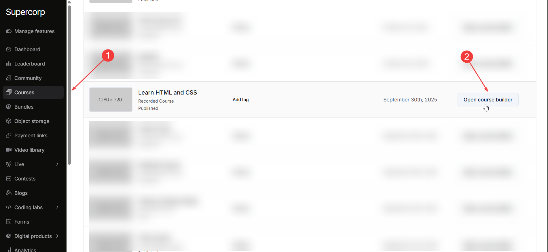Go to the Instructor Dashboard and select Courses from the sidebar.