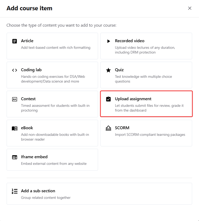 - Write a Description (rich text supported) for your assignment. You can include formatted text, links, and images.