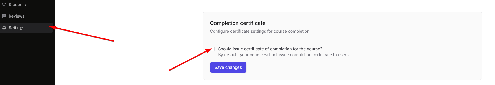 Click Generate with AI in the certificate settings. Use the AI chat to describe your preferred style or layout, and the system will automatically generate a professional certificate template for you.